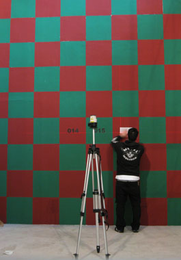 | Instalación: Pintura y numeración de los muros, construcción de torre (altura 12 m.). Completada con dibujos y bocetos. |