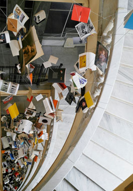 Instalación completada con dibujos, bocetos, “collages” y “readymades”